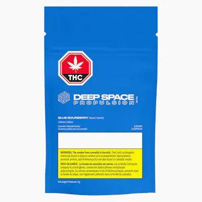 Ignite your discovery, with Deep Space Propulsion Gummies. 10mg THC in one sour and bold gummy. Also featuring <30mg naturally occurring caffeine.