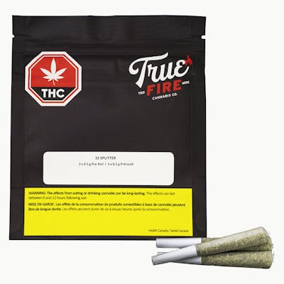 33 Splitter is an indica-dominant cross between the hard hitting Gelato 33 x Atom Splitter strains. This flower has been hand crafted by True Fire in small batches, carefully hand trimmed and cold cured.