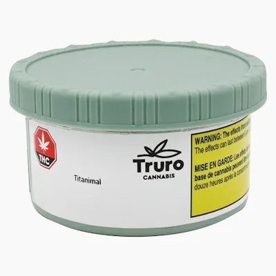 Titanimal by Truro is a titan of the animal cultivars, a unique and high potency indica dominant legacy cultivar of Animal Cookies x Platinum Kush Mints. The flavour profile is earthy, sweet and minty. Titanimal is proudly grown on the East Coast in Truro, Nova Scotia in our state-of-the-art small batch production facility, where each bud is carefully cultivated, hang dried, hand trimmed, slow cured (21-28 days) and hand packaged in recyclable aluminium cans that are purged with liquid nitrogen to preserve the dried flower quality, moisture content and terpene profile.