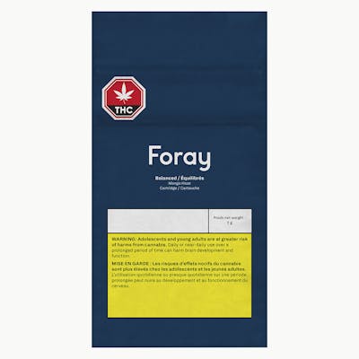 Experience Foray's Mango Haze, now in a convenient 2 gram cartridge. Mango Haze is a perfectly balanced and approachable (1:1 THC/CBD) formulation that welcomes everyone to their cannabis journey. Indulge in natural, ripe mango flavours with a tropical twist, underscored by subtle earthy tones and all topped off with a lively burst of zesty orange citrus.