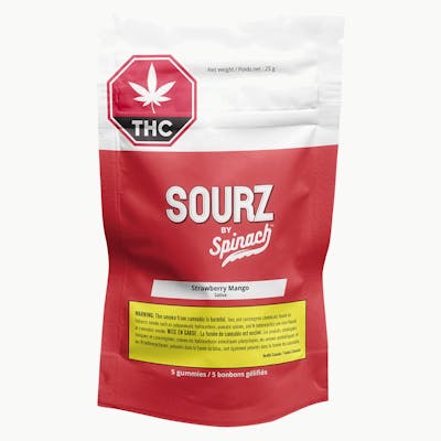 What happens when you mix luscious strawberry and tropical mango flavours? You get a thundering burst of flavour with Strawberry Mango SOURZ by Spinach™. This dual-flavored soft chew blasted with sour crystals is over-the-top with only natural flavours and colours. With 5 big “S” gummies per pack, you and your friends can enjoy more SOURZ by Spinach™ in one sitting. 10 mg THC total per pack.