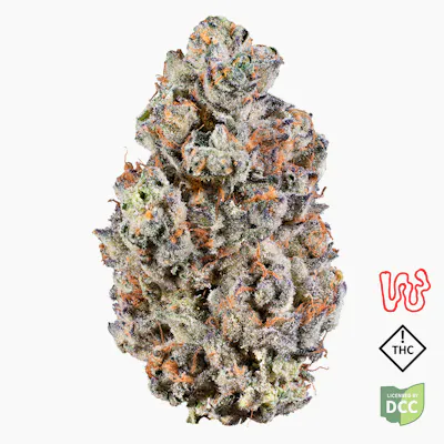 Indica. Genetics: Lemon Cherry Gelato × RS-11. Sour cherry, lemon zest, and a little pastry sweetness in the jar. Grind it up and fuel joins the fruit. Dense, frosty buds with bright orange pistils. RS-11 genetics doing what they do.
