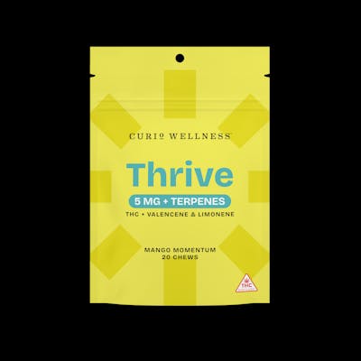 Discover Thrive Mango Momentum Chews, part of Curio Wellness’ Best Self Collection. Bursting with juicy mango flavor and bright citrus notes, these Sativa chews are crafted for bright, enjoyable moments that keep pace with your day. Available in 5mg and 25mg strengths, Mango Momentum is infused with THC and a lively terpene duo—valencene and limonene—for a smooth, flavorful experience that’s as refreshing as it is reliable. Each chew is made with high-quality, natural ingredients and consumer tested to ensure consistent flavor and quality. Gelatin-free and infused with natural colors and flavors, they’re a plant-based indulgence designed to complement your rhythm with ease. Packaging may vary by state. Maryland packaging shown.