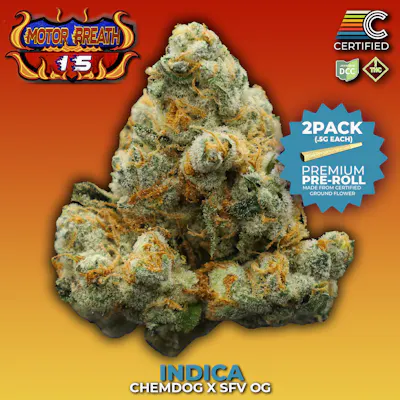 ABOUT: Nug-Run, Premium Pre-Rolls; made from CERTIFIED grown genetics. We meticulously grind strain-specific nugs in-house and pack each unit by hand. — ~24.4 - 27.8% THC PRIMARY TERPENE: Caryophyllene | Limonene | Myrcene SECONDARY TERPENES: Linalool | Humulene | Bisabolol (based on an average of test results; may vary batch-to-batch) — DESCRIPTION: Motorbreath #15 (Chemdog × SFV OG), bred by Pisces Genetics, is a cornerstone of modern gas strains—loud, earthy, and unmistakably OG. Dominant Myrcene delivers heavy earth and musk, while Limonene adds a sharp citrus edge and Caryophyllene brings spicy diesel funk. Supporting terpenes like Linalool, Beta-Pinene, and Humulene introduce subtle pine, floral, and dry herbal tones, with Fenchol, Bisabolol, and Terpineol adding smooth, resinous complexity. This cultivar hits hard in aroma—bold, sedating, and pure OG excellence. — LINEAGE: Chemdog x SFV OG CATEGORY: Indica BREEDER: Pisces Genetics AROMA: Pungent gas and deep earth with subtle diesel, pine, and a whisper of floral spice. — OUR GENETICS: Choice genetics are hand-selected through pheno hunts for unique cannabinoid & terpene profiles, providing Ohio consumers with a curated selection of exciting and refreshing cultivars. — WHO WE ARE: We are family-owned, operated, and based out of Dayton, Ohio. Our facility has hosted family businesses for three generations. From auto parts to sushi and now cannabis. We pride ourselves on our passion for high quality, science, and design to create an exceptional cannabis experience.
