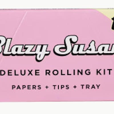 Highlights 20-pack display 32 sheets per booklet Blazy Susan rolling papers Deluxe Rolling Kit Ultra thin pink paper Matching pink tips Fold-out rolling tray with magnetic closure Slow-burning Vegan & non-GMO