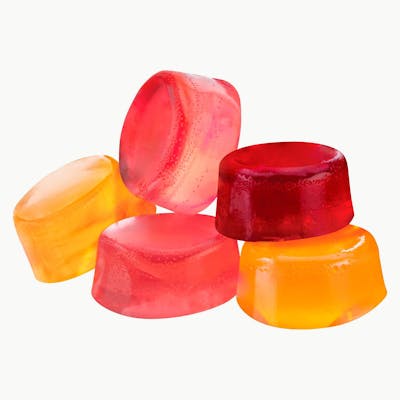 A delicious medley of 30mg CBD gummies, busting with bright and balanced flavours. Each pack features a mix of Peach, Apple and Black Cherry flavours, available in 5-packs of non-sugar coated gummy goodness. Sun-kissed peach delights the senses with ripe flavour, while apple is crisp and juicy. Hints of blackberry paired with sweet black cherry to make a doubly-delightful gummy combination that will please any discriminating connoisseur. Made with CBD isolate and natural flavours