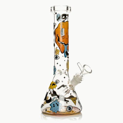 Red Eye Glass 12" Tall Smiley Face Beaker Base Water Pipe