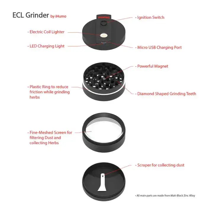 iHUMO 2 in 1 Grinder & USB Lighter, 4 Parts