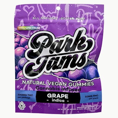 Vegan & Gluten Free 10 per bag 10mg per piece Park Jam edibles are naturally flavored, gluten-free and vegan. These delicious Grape gummies are jam packed with a Indica-inspired terpene profile, 10mg of THC per gummy, and are booming with flavor. Welcome to a day in the park. Sit back, relax, and Jam on. Life tastes better with Park Jams.