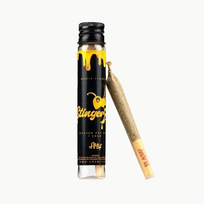 THC: 444.88mg | b-Caryophyllene mg/g: 5.25mg | Linalool mg/g: 2.16mg | a-humulene mg/g: 1.60mg -- The Stinger is an expertly rolled joint of premium flower, designed for perfectly even density and a balanced smoke. The addition of a concentrate, such as oil, kief or a mix of different strains, offer a specific cannabinoid ratio.