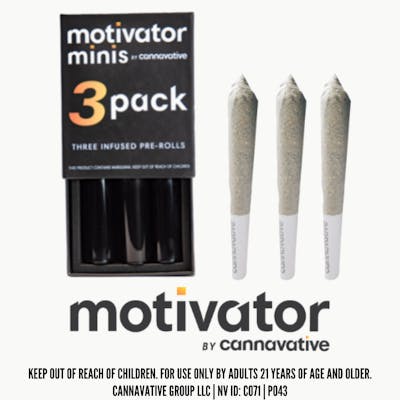 THC: 723.9mg | b-Caryophyllene mg/g: 5.8mg | Linalool mg/g: 3.5mg | a-bisabolol mg/g: 2.9mg -- Get ready to be impressed. The Motivator is one of our newest products and packs a big punch. As one of the tastiest flower products on the market, this infused pre-roll offers an unmatched combination of flavor and potency. By regularly rotating flower strains and honeycomb combinations, we’re always coming out with new blend that is sure to satisfy. —————————————————————————————————— Keep out of reach of children. For use only by adults 21 years of age and older. Cannavative Group LLC | NV ID: #C071 | #P043