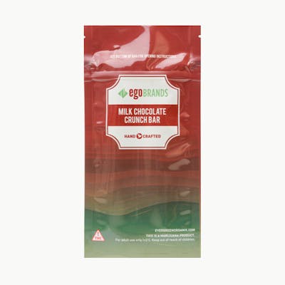 THC: 100.36mg -- The perfect blend of creamy milk chocolate and crispy crunchy rice cereal bites make the EGO Brands Milk Chocolate Crunch Bar a must-try edible. Each bite contains the perfect ratio of crunchy chocolate goodness that will be certain to tickle your taste buds while leaving you with a blissful cannabis experience. Dosed at 100mg THC per bar.