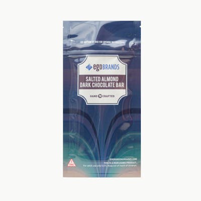 THC: 89.45mg -- A gourmet blend of salty toasted almonds and rich dark chocolate. EGO Brands Salted Almond Dark Chocolate Bars are carefully crafted in small batches by our gourmet chocolatiers to ensure quality, taste, and consistent dosing in every bite. Dosed at 100mg THC per bar.