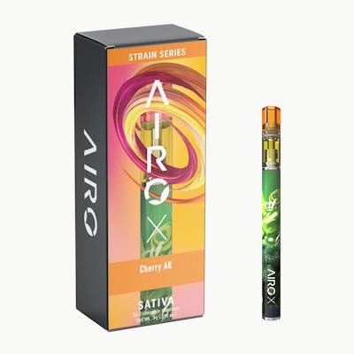 Easy to use and ready to go. AiroX brings our signature innovation and premium cannabis ingredients into a simple all-in-one vape. For added convenience and full command on your end, the 1g disposable is also rechargeable! AiroX offers remarkable portability and enjoyment, with a sleek user-friendly design that’s potent and smooth right out of the package. Combining our pure, high-quality formulas with game-changing technology, this no-frills disposable vaporizer offers extraordinary experiences for all your moods and occasions. With its clear window, you always know how much oil is left, and the USBC rechargeable port ensures you enjoy every last drop. Cherry AK is a Sativa that keeps you focused and engaged in whatever adventure you’re about to embark on. Whether it be an outdoor concert, a hike, or activating your creative side, Cherry AK will electrify your mind with enthusiasm. As you inhale, taste sweet berries and fruit from dominant terpenes Myrcene and Beta-Caryophyllene. As you exhale, feel your consciousness lift and enliven with motivation. STRAIN TYPE: Sativa-dominant.
