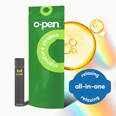 O.Pen’s Signature Strains Live Resin All-In-One brings full-spectrum potency and flavor in a sleek, disposable format. Extracted from fresh frozen flower, this vape preserves the original terpene profile for an authentic strain specific experience. Featuring top tier genetics from the Signature Strains line, it's designed for flavorful, hassle free enjoyment wherever you go. POTENCY: 75% avg. BATTERY TYPE: Disposable. STRAIN TYPE: Indica-dominant.