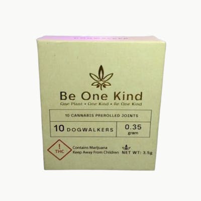 Experience the ultimate in cannabis enjoyment with 3.5g 10-Pack Dogwalker (0.35g) Pre-Rolls from Be One Kind. Each pack contains ten expertly crafted pre-rolls, made exclusively from high-quality buds, never shake. - Premium Quality Buds: Crafted exclusively from top-shelf buds to ensure the highest quality and potency, avoiding the lower quality of shake. - Generous Size: Each pre-roll contains 0.35 gram of premium cannabis, offering a fulfilling smoking experience. - Rich Flavor Profile: Enjoy a robust and flavorful smoke with every puff, showcasing the unique characteristics of the premium strain. - Convenient 10-Pack: Comes in a pack of ten dogwalker pre-rolls, making it easy to enjoy premium cannabis anytime, anywhere. - The 3.5g 10-Pack Dogwalkers is perfect for those who like to smoke smaller joints and appreciate the finer things in life. Treat yourself to a superior smoking experience with quality you can trust. STRAIN TYPE: Balanced hybrid.