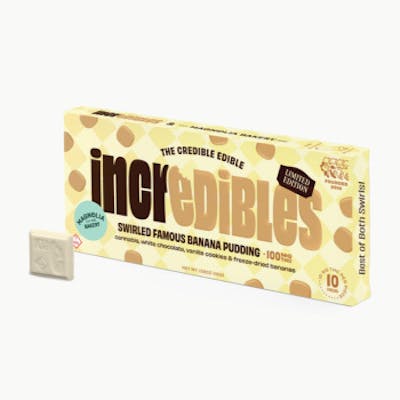 Creamy vanilla puddin’, crunchy ‘nilla wafers and just-ripe ‘nanas. Inspired by the famous Magnolia Bakery Banana Pudding, two iconic teams paired up to create the ultimate sweet treat. Ingredients: White Confectionery Coating (Sugar, Vegetable Oil (Palm Kernel Oil & Hydrogenated Palm Kernel Oil), Whey Powder, Whole Milk Solids, Nonfat Dry Milk Solids, Soy Lecithin (An Emulsifier), Salt, and Artificial Flavor), Heavy Whipping Cream Powder (Sweet Cream Solids),Cookies (Enriched Flour (Wheat Flour, Niacin, Reduced Iron, ThiamineMonohydrate (Vitamin B1), Riboflavin (Vitamin B2), Folic Acid), Sugar,Soybean Oil, High Fructose Corn Syrup, Salt, Baking Soda, Soy Lecithin(An Emulsifier), Natural Flavor, Spice), Freeze-Dried Bananas, PalmKernel Oil, Natural Flavors, Cannabis Extract ALLERGENS: CONTAINS: Milk, Soy, Wheat. MAY CONTAIN: Peanuts, Eggs, Walnuts, Coconut, Almonds
