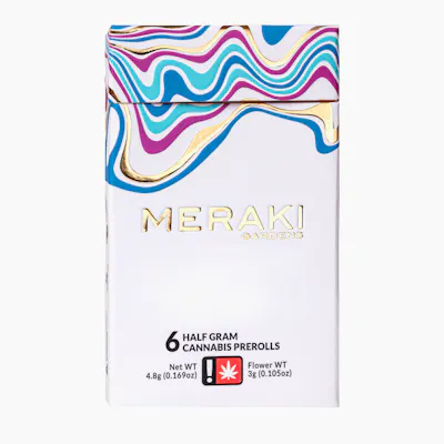 Meraki Gardens Preroll 6-Pack features six 0.5 gram prerolls crafted with high quality, clean green certified flower. Grown with care and attention to detail, these prerolls offer smooth smoke, consistent burn, and rich flavor, making them a convenient option for everyday sessions or sharing.