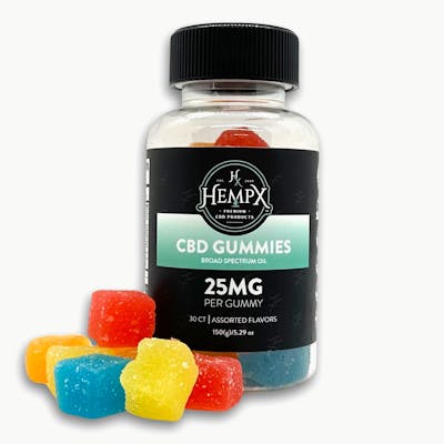 25mg CBD per serving Assorted flavors Broad spectrum formula THC-Free Gluten Free, Vegan, Non-GMO Guaranteed third-party lab tested 30 Gummies per bottle