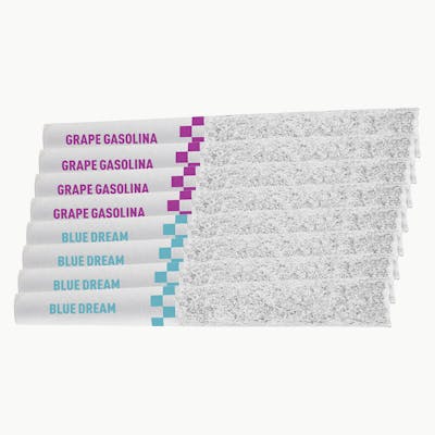 Frost Around & Find Out! These super tasty pre-rolls are THCa Diamond Frosted, Terpene Enhanced, and made from premium, full bud flower, infused with liquid diamonds. Each Frosted Flyer is highly potent and packed with nonstop flavour all the way down to the crutch. This variety pack features 4 x 0.35g Blue Dream and 4 x 0.35g Grape Gasolina.