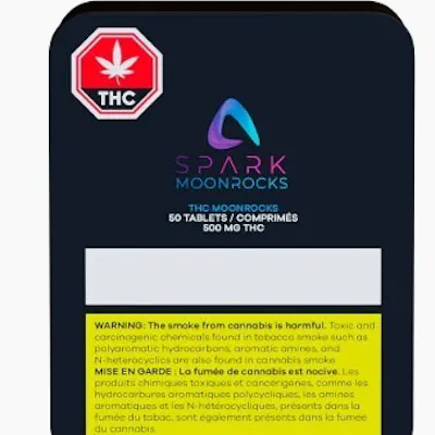 Spark Moonrocks are fast-acting tablets. Each package contains 50 x 10mg THC tablets that can be easily split into 5mg doses. These tablets are powered by patent pending technology enabling fast onset times, and robust bioavailability. Explore an efficient, cost-effective and discrete way to consume cannabis with Spark Moonrocks.