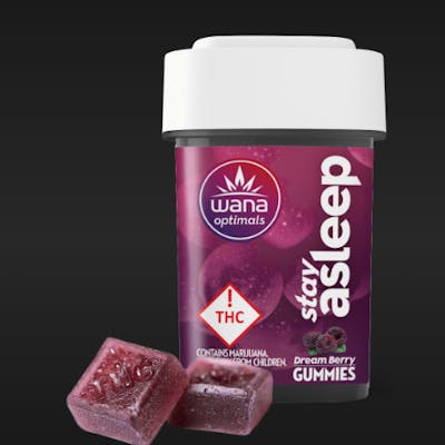 Introducing 'Stay Asleep' by Wana, these delightful dream berry gummies offer a gentle and precisely calibrated solution to address the underlying causes of sleeplessness, including stress and physical tension. Crafted with a custom blend of CBD, CBN, CBG, THC, and over 30 specialized terpenes, these gummies deliver restful and enduring sleep without the inconvenience of next-day grogginess. Specifically designed for those experiencing difficulty sleeping through the night, 'Stay Asleep' reflects Wana's commitment to cannabis innovation. **Q: What differentiates the 'STAY' from the 'FAST' ASLEEP? **A: STAY is a cannabis-only experience, without the addition of melatonin. This means the primary sleep-inducing effects come from the cannabis cannabinoids like THC, CBD and CBN. Users who prefer a more traditional weed edible experience without the influence of melatonin may opt for these gummies. The recommendation to take them an hour before bed suggests that their effects may take some time to kick in, providing a long-lasting and peaceful night's sleep.