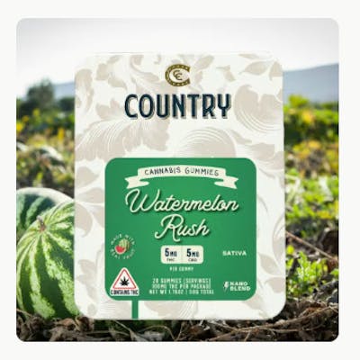 Kick your day into gear with Watermelon Rush 20pk Gummies by Country—an energizing edible that combines real watermelon flavor with the power duo of THC and CBG. Crafted for clarity, uplift, and smooth daytime energy, this sativa-leaning blend delivers an experience that’s both invigorating and balanced. Each gummy packs 5mg THC and 5mg CBG, giving you a refreshing lift that fuels creativity, activity, and good vibes. With a crisp, juicy watermelon profile, these gummies are perfect for keeping the momentum going from morning to sunset—whether you’re out exploring or tackling your to-do list with a smile.