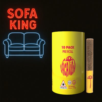 Clock out and kick back. Sofa King brings on full-body relaxation with smooth, heavy vibes - made for sunsets, deep couch sessions, and doing absolutely nothing (highly recommended). More vibes, less hassle. Vacation’s 10-pack of custom Straight MINI pre-rolls is your easy ticket to good times, small but mighty, with 0.35 g of perfectly packed flower in every joint. Quick to spark, smooth to share, and always ready when you are. These are DogWalkers sized joints!