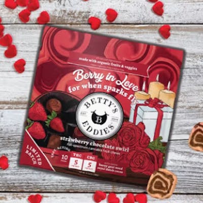 Roses are red, chocolate is sweet – Betty's swirled flavor and fun into a Valentine’s Day treat! These swoon-worthy strawberry-and-chocolate swirl chews are infused with full-spectrum cannabis and CBG. A decadent little treat designed to boost your mood and spark connection, they’re the perfect match for you and your Valentine. Or keep the whole bag for your one true love – yourself! Chews love, feel the spark!