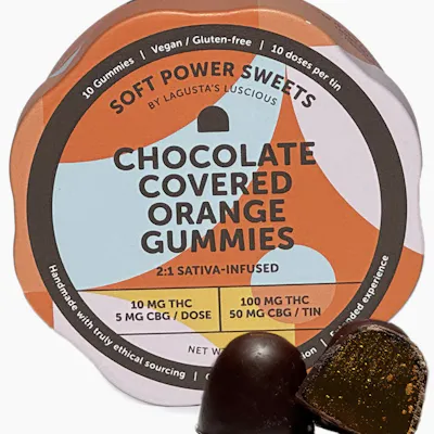 Soft Power Sweets | Edibles | Sativa | Chocolate Covered Orange Gummies | 10mg x 10 Pack