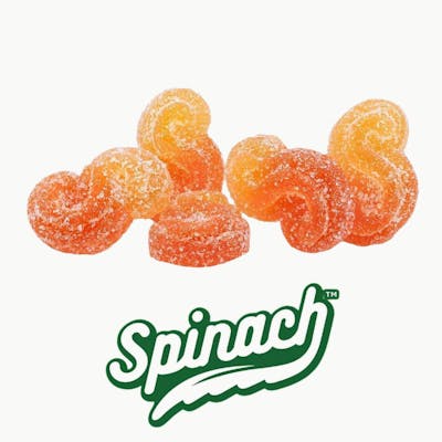 Peach Orange SOURZ by Spinach™ are balanced 1:1 THC and CBD gummies with sour crystals and natural flavours. Five large “S” gummies per pack with 2mg of THC and 2mg of CBD each.