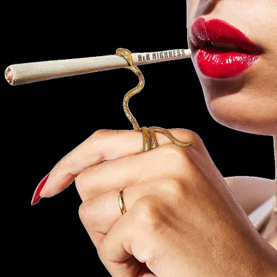 For the most glamorous way to bake, slide your grass inside our snake. Animal attraction and supreme style, delivered to your finger by Her Highness. Snake in the Grass takes statement jewelry and form-follows-function to the next level. Not your fun aunt's roach clip, this 14k gold-plated cannabis jewelry wraps around your finger leaving you to puff and pose in style with your perfect mani in tact. The joint holder is one size (7), so find a suitable finger, or pass it around by its ring, but not before you adjust the mouth's grip (make it smaller with a firm squeeze to fit your slim Her Highness Pre-Roll.) It comes in a velvet pouch, perfect for gifting to others or yourself. It's a snake! It's a ring! It's your new favorite thing.