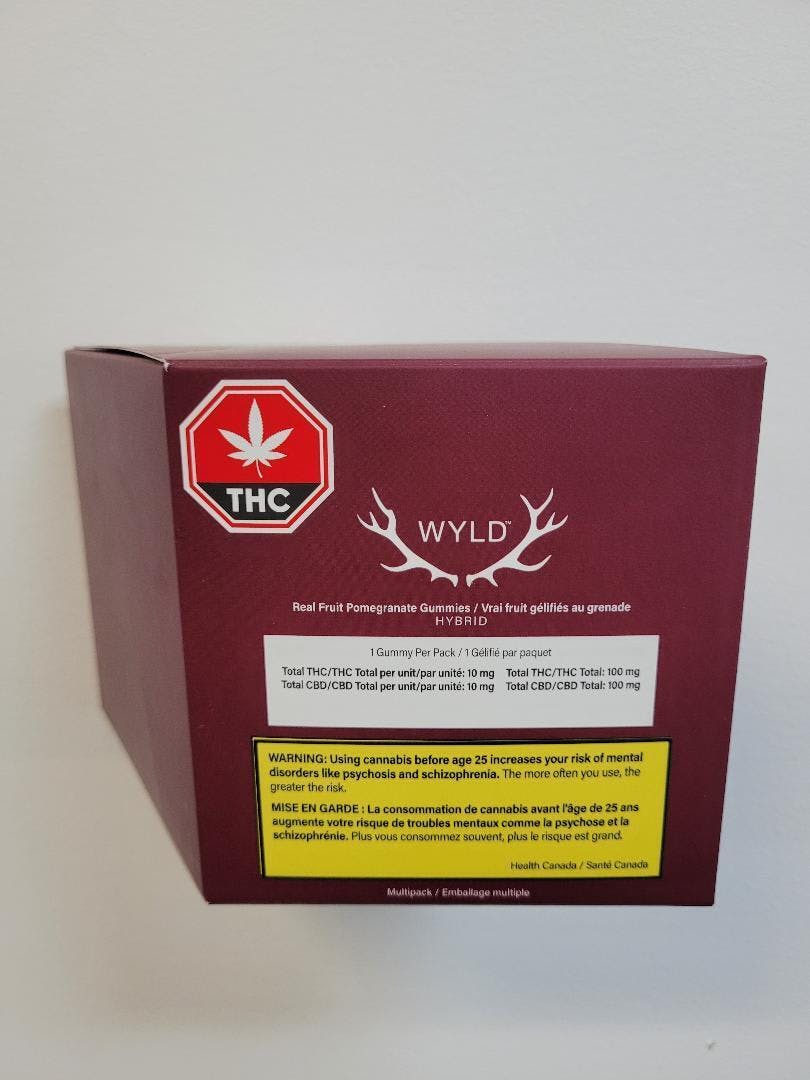 WYLD Real Fruit Pomegranate 1:1 THC:CBD Gummies 10x