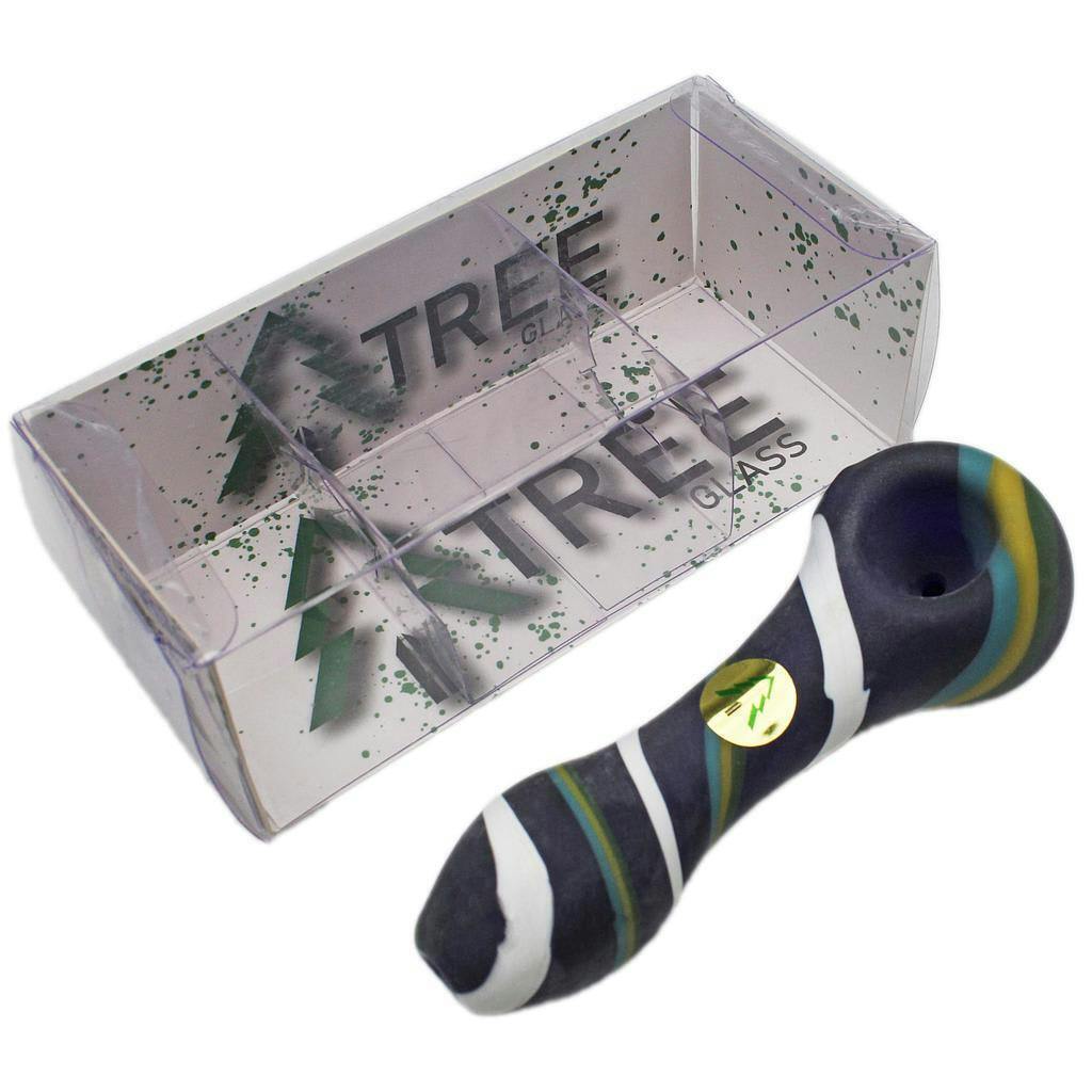 Tree Glass 4.5" Glass Pipe Blue + Amber Stripe