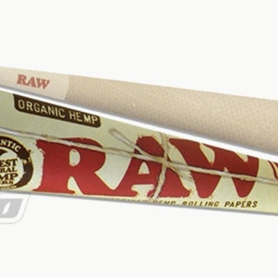 RAW Organic Hemp rolling paper cones, pre-rolled for you with the unbleached, organic hemp rolling paper you'd expect from RAW rolling papers. Makes a King sized cone shaped joint with paper tip already inserted. 3-Pack of joy.