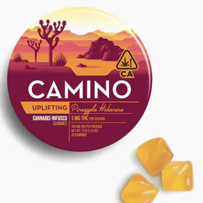 5mg THC per piece | 100mg THC total in 20 pieces -- EFFECT: Uplifting (Sativa) -- A pairing of energy-stimulating sativa terpenes with ripe pineapple and a touch of heat for the perfect daytime lift. Plan a trip to the Mojave and invigorate your senses. -- TERPENES; • Limonene - Reduces stress, alleviates asthma and allergies, reduces inflammation, and acts as an antioxidant. • Beta-Caryophyllene - May assist with the body's response to anxiety and stress. • Linalool - Anti-anxiety and sedating effects. • Alpha-Pinene - Improves attention span to deliver a more lucid and focused experience. -- INGREDIENTS: Organic Tapioca Syrup, Sugar. Gelatin, Malic Acid, Natural Flavors, Citric Acid, Cannabis Extract, Fruit and Vegetable Juice for Color, Natural Terpenes, Coconut Oil, Carnauba Wax