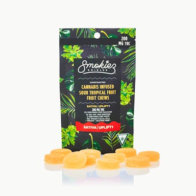 Now infused with Sativa cannabis terpenes! Smokiez Sativa Sour Tropical Fruit Fruit Chews are NOT YOUR AVERAGE GUMMY™ These delicious fruit chews are a tasty and satisfying way for you to medicate! They are also Vegan, Gluten Free, Dairy-Free, and contain NO High Fructose Corn Syrup. Each of our mouth watering fruit chews contain 20 mg of THC, and made with our high clarity cannabis distillate for great taste. There are 10 pieces per package with 200 mg active THC per package.