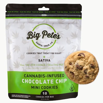 Each pack contains 10 individually dosed 20mg cookies. These classic chocolate chip cookies are made with Big Pete's signature full-spectrum cannabutter, ensuring a rich, authentic taste and a consistent cannabis experience.