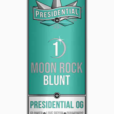 With this 1.5g OG Moonrock Infused Blunt, Presidential brings you top shelf flower infused with tropical flavor, Premium THC Distillate, and the highest quality kief. Rolled in 100% tobacco free blunt paper, stuffed with the best top-shelf flower, and fitted with a chlorine-free filter to allow for only the smoothest of hits, Presidential’s Moon Rock infused blunts are the only thing you need to elevate your weekend. Recommended for those with a high tolerance or those looking for a good time, these Presidential pre-rolls are sure to send you to the moon and back.