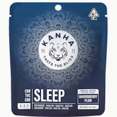 150mg CBN x 100mg THC x 50mg CBD per bag Dreams are sweeter with our Marionberry Plum 3:2:1 SLEEP blend. Formulated with CBN, THC, CBD, enhanced with antioxidant rich goji berry and sweetened with honey which contains tryptophan, these sleep gummies gently relax you while melting away the day's stress for a deep, restorative slumber. Instructions: Eat 1 gummy. Onset starts around 5-15 minutes. Wait 60 minutes for full effect. Keep in a cool, dry place. Avoid temperatures over 75°F. Ingredients: Tapioca Syrup, Cane Sugar, Water, Organic Raw Honey, Gelatin, Agar, Locust Bean Gum, Goji Berry Fruit Powder, Carnauba Wax, Natural Fruit Concentrate, Citric Acid, Malic Acid, Natural Flavor, Natural Color, Cannabis Oil, VESIsorb Nanotechnology, Natural Indica Terpenes