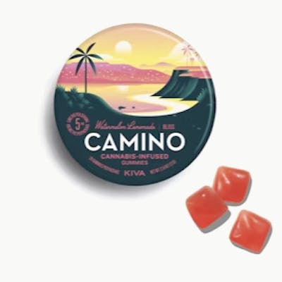 A physical road takes you to a physical place. Camino (“road” in Spanish) takes you to a state of mind. Find yourself on a blissful beach with Kiva’s Watermelon Lemonade Camino gummies. Let sativa and indica-like terpenes alongside juicy watermelon and tart citrus welcome you to your happy place. Ingredients: Organic Tapioca Syrup, Sugar, Gelatin, Malic Acid, Natural Flavors, Citric Acid, Cannabis Extract, Fruit and Vegetable Juice for Color, Natural Terpenes, Coconut Oil, Carnauba Wax. *This product was manufactured in a facility that processes peanuts*