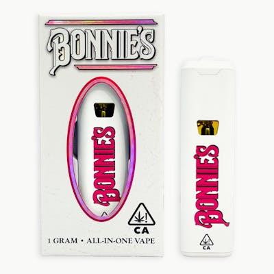 Bonnie’s All-In-One Vape and Distillate Cartridge are curated for maximum pleasure, style, and convenience. With a beautiful, sleek design and signature pink Bonnie’s branding, we paired this with premium oils and hand-picked terpenes to ensure the highest-quality experience. Fruity but powerful—don’t be fooled by the flawless packaging.