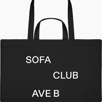 SOFACLUB Limited Edition Tote Bag. Printed with “SOFA” on one side and “AVE B” on the other. Designed in New York Made in Portugal 100% Organic Cotton Interior Pocket