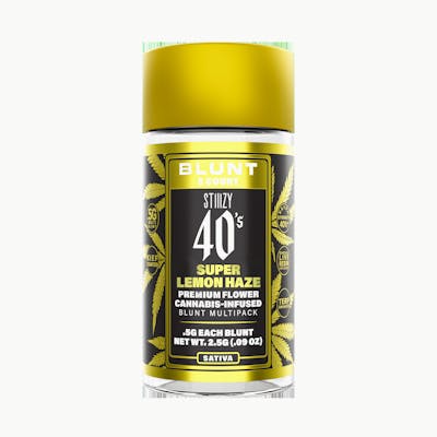 STIIIZY 40's blunts are rolled with 100% tobacco free, kief dusted hemp wraps, secured tightly around a glass tip. We’ve packed each infused blunt with premium, high quality flower so that every inhale is just as good as every exhale. STIIIZY 40's Blunts are reinventing the way you get high by being the first to introduce 40% cannabinoids (THC) potency with live resin infusion. Pass the blunt.