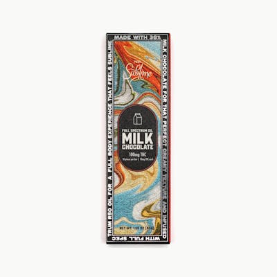 Hand-crafted cannabis-infused chocolate bars are a delectable and indulgent way to enjoy the benefits of cannabis. These artisanal treats are made with premium-quality chocolate and infused with high-quality cannabis extracts to create a unique and satisfying experience. Each chocolate bar is carefully crafted by hand, ensuring that every bite is perfectly balanced in flavor and potency. Deliciously decadent milk chocolate bar made with gourmet 38% cocoa chocolate and infused with full spectrum RSO oil. Sublime's milk chocolate bar offers a smooth and creamy texture that is sure to satisfy your sweet tooth cravings. Each bar is infused with a carefully crafted blend of full spectrum RSO oil for a full body experience that feels Sublime. A 100mg THC bar that breaks into 10 easy to dose 10mg THC pieces. Gluten-free.