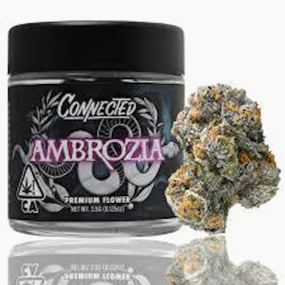 Ambrozia by Connected fuses Bad Apple and Z to deliver bold sweet candy and gassy tart fruit pie flavors with hints of pine and spice. Crack open a nug and you’ll be hit with a burst of sweet candy and tangy gas, balanced by subtle notes of pine and tart fruit pie. The buds are dense, sticky, and dripping in trichomes, flaunting deep greens, hints of purple, and a frosty layer that screams fire. These burn smooth with clean white ash, offering a silky smoke that hits just right.