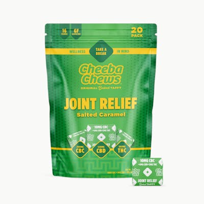 Joint Relief Salted Caramel Taffy 10MG CBC • 6MG CBD • 5MG THC Relief that works as hard as you do—crafted to ease aches and support recovery. Feel better physically as these chews help you stay active and on the move. Enjoy the smooth salted caramel flavor as you reclaim your day with joy and confidence.
