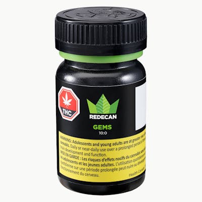 Redecan’s Gems are a perfect way to discreetly consume pre-dosed oil. Processed using state-of-the-art CO2 extraction technology, Gems are made with responsibly sourced MCT oil and encased in gelatine capsules that are produced in-house. Redecan's 10:0 Gems contain 10mg of THC per capsule.