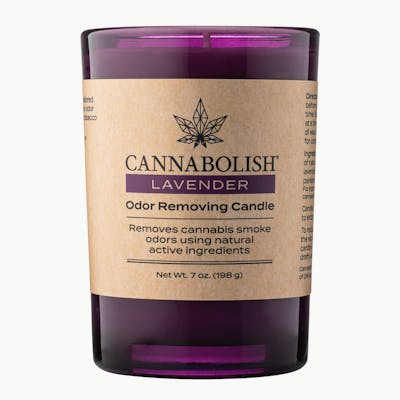 Scented candles mask odors with harsh chemicals that, when burned, can produce harmful air pollutants. Cannabolish's clean-burning soy-based candle removes odors using safe, natural ingredients - no toxic chemicals or fake fragrances. This candle also has a 30-hour burn time. Light a Cannabolish candle for added ambiance, bask in the gentle glow and enjoy an odor-free session, alone or with your circle. Size: 7oz Neutralizes Odour Molecules Made with Natural Ingredients—Water and Plant Oils Completely Free of Paraffin Wax, Phthalates, Sulfates, and Parabens Non-Toxic and Safer for People, Pets, and the Planet Glass Container is Recyclable 30 Hour Burn Time Wick Contains No Lead Poured in the USA How Cannabolish Candles Work: Before lighting, trim wick to 1/4". Burn no longer than 4 hours at a time. Stop burning candle when 1/2" of wax remains. Burn within sight. Keep away from things that catch fire. Keep away from children. Avoid drafty areas. Be sure candle is placed on a stable, heat resistant surface. Never touch or move a burning candle.