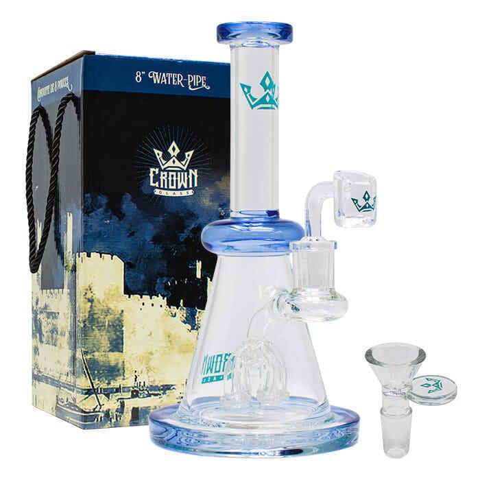 Bent Neck Blue Crown Glass 8 Inches Glass Dab Rig